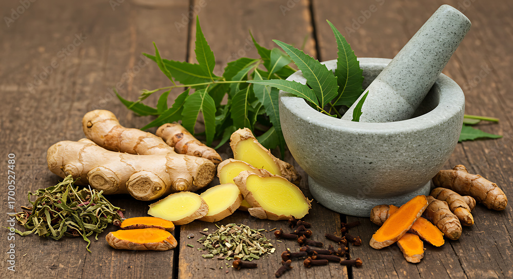 Natural herbs like tulsi, neem, ginger, and turmeric help fight infections and boost immunity.