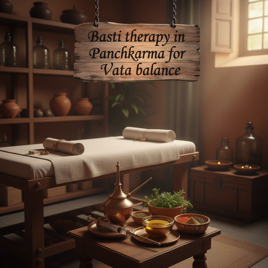 Administration of medicated oils or decoctions through the rectum to balance Vata dosha.
