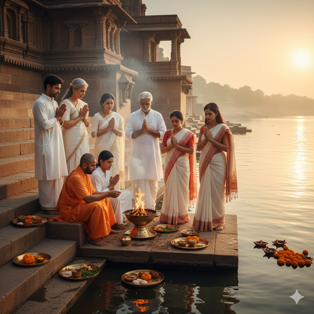 2. Invocation of Ancestors : Priests chant mantras to invite forefathers’ souls.