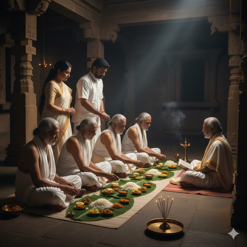 The word “Shradha” means performing rites for ancestors with faith, while “Tripindi” signifies offering pindas (rice balls mixed with sesame, barley, and ghee) to three generations of ancestors — father, grandfather, and great-grandfather (along with their spouses).